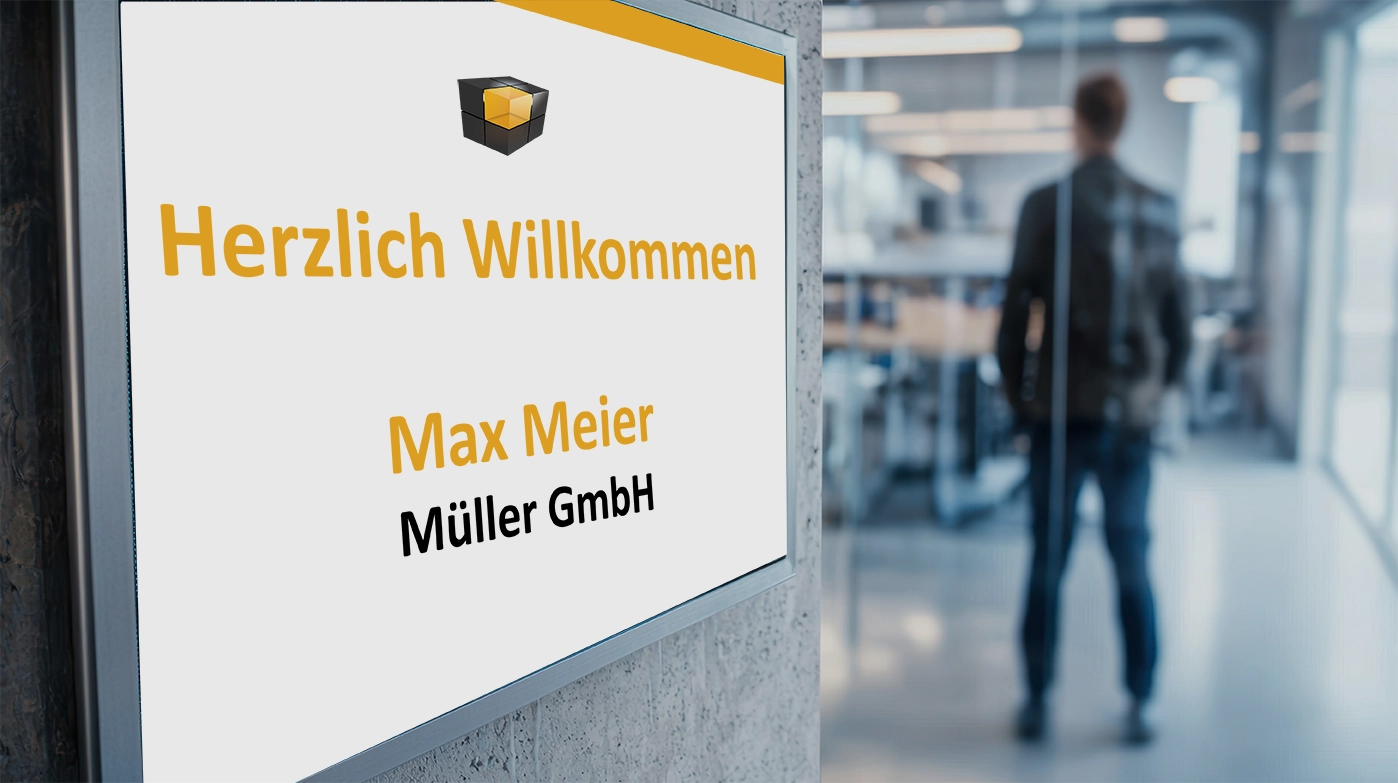 Mit ELO gestalten Sie auch den Empfang persönlicher: Automatisieren Sie Ihre Besucherdatenverwaltung vollständig digital und datenschutzkonform. Individuelle Besucherausweise und personalisierte Begrüßungsbildschirme sorgen für einen professionellen und persönlichen Empfang – perfekt für Kunden, Partner oder Bewerber in Ihrem Haus.